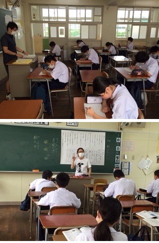 ・1年生の授業風景で、数学・国語の様子です。数学は小テストを実施しています。