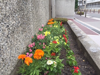 今年は、「コロナの影響であまり育てることができなかった」とお話しされていましたが、いただいたお花をさっそく正門前に管理作業員さんが植え換えしてくださいました。