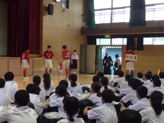 女子バレーボール・サッカー・剣道部も工夫を凝らし、演技を含めてアピールをしています。