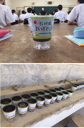 技術では、2時間の連続授業ですが、最初の時間はハニーレタスの『栽培』をしていました。一人用のキットが配られ、順を追って手を加え、そこに種を植えていきます。