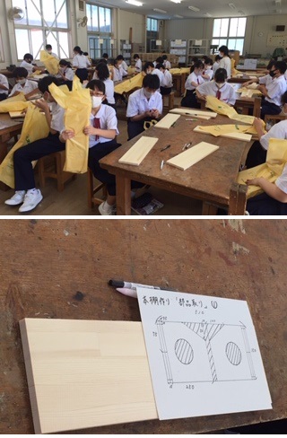 ・次の時間は、木材加工で『本立て』に取り組んでいました。これも、一人一人のキットが袋に入って用意されています。