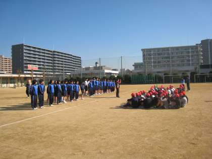 本校1年生が体育の授業で集団行動の勉強をしました。