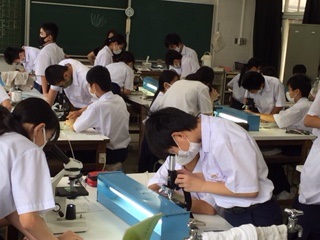 理科では、理科室で顕微鏡の使い方を学んでいました。