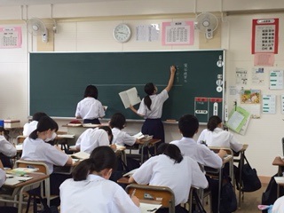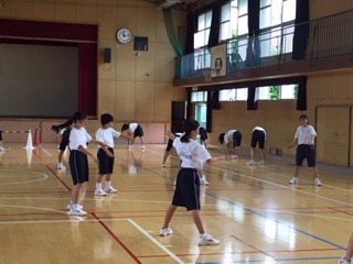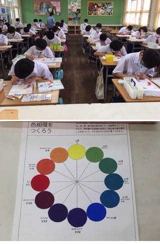 国語では、漢字演習問題・美術は色相環の作成・体育はラジオ体操をグループで練習していました。
