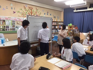 ・写真は図書委員会・書記委員会のようすで、各クラスからの報告や月間目標を決めているところです。
