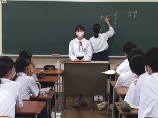 3年生学区年委員会では、修学旅行を控え、学年の目標などを考えていました。