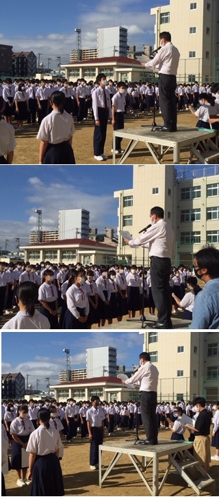 ●全校集会では、剣道部・卓球部の秋季市大会、水泳部のブロック大会等多くの表彰が行われました。