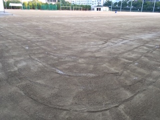 16時からは、運動場を使用している部活動生徒が「にがり」を撒いて整備してくれました。