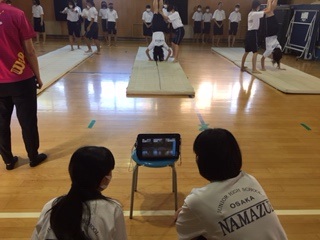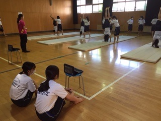 ・2年生女子体育でマット運動をしています。