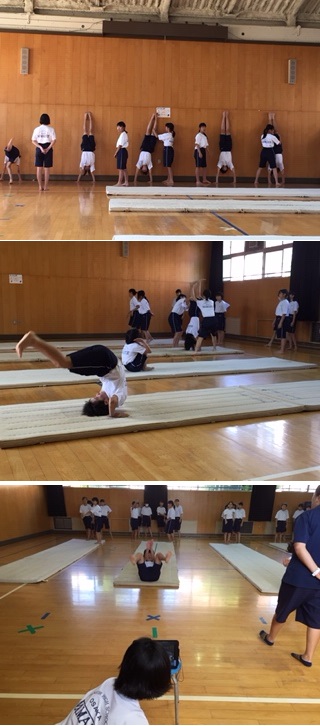 テストでは5つの技「前転・開脚前転・後転・開脚後転・倒立前転」から3つを組み合わせて行うようです。