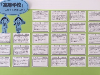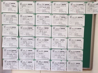 ●3年生の進路関係の掲示板には、体験入学の案内だけでなく、体験後の感想も紹介されています。