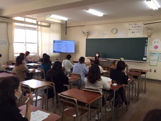 コロナウイルスの感染予防のため、各教室でパワーポイントを使用した映像を見ていただき、説明は進路担当の先生が放送で一斉におこないました。