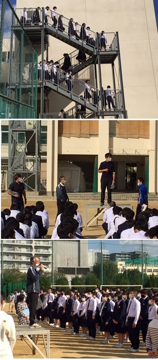 教頭先生からは「訓練は本番のように、本番は訓練のように」、「本番ではやり直しはききません」などお話がありました。
