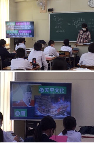 映像で、様々な資料を視覚的にとらえ、興味関心づけていました。