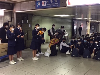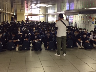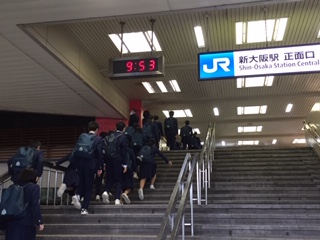 校長先生、学年主任の先生からのお話の後、新幹線ホームに移動です。