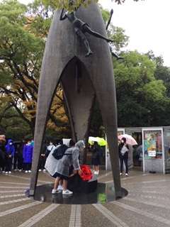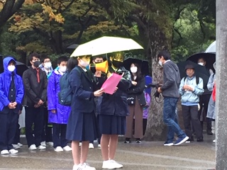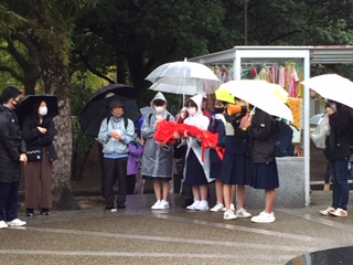 平和宣言のあと、全校生徒で協力して作った千羽鶴を奉納しました。