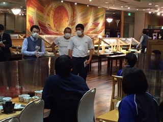 到着が少し遅れたので、夕食後に休暇村の入村式をしました。