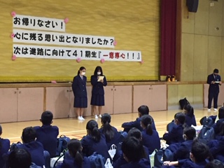学年委員長・学校長の話に次いで、添乗員・写真屋さんへの御礼の言葉が述べられました。