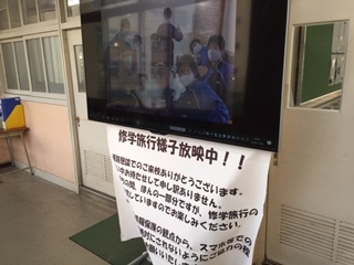 ※懇談の待ち時間に、一部ですが修学旅行の様子をご覧いただけますように、学年の先生が廊下に3か所テレビの準備をしてくれましたので、お知らせいたします。