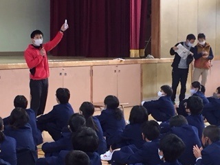 本日、5・6時間目に、それぞれ体育館で事前指導をが行われました。