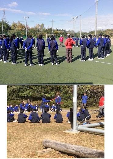 ローエレメントは地上で、指導員の課題に仲間と協力して取り組みます。その中で、「他者への理解」を深め、信頼関係を深める活動です。