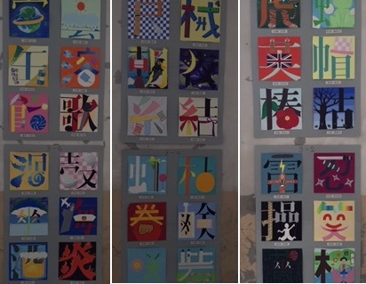 ●美術室の前に3年生の美術の授業での作品(絵文字)が飾られています。