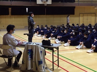 ・本日6時間目、2年生は「薬についての学習」を体育館で行いました。