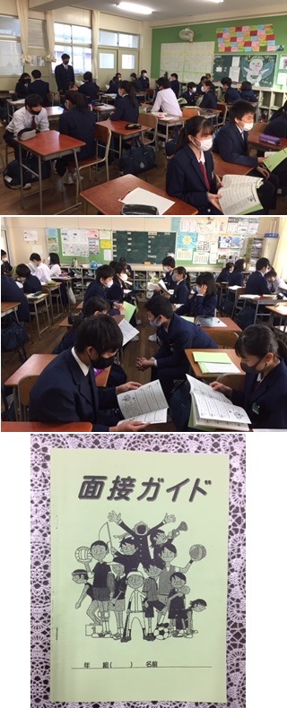 ●3年生は各学級で、入試の面接時の諸注意をしていました。