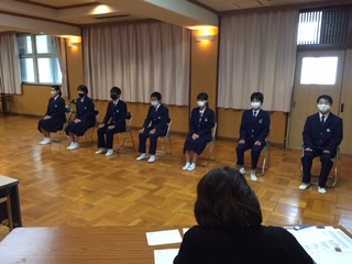 例年は校長室で行うのですが、密を避けるため、多目的室での実施としました。
