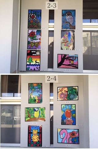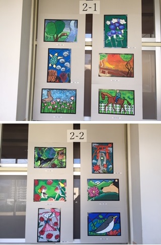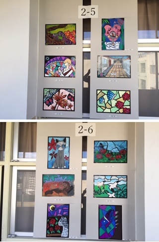 写真は、2年生のステンシルという版画の作品です。懇談時には、お立ち寄りください。