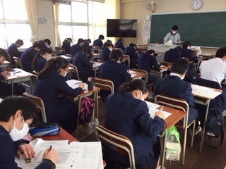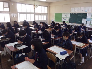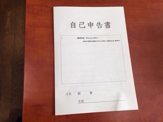 2学期の振り返りや、公立高校の「自己申告書」の練習をしていました。
