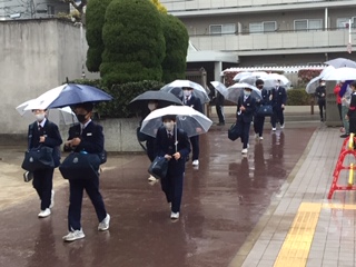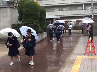 玄関付近では、傘の水が垂れて廊下が滑りやすくなりますので、管理作業員さんが、モップで廊下の水を掃き出してくれていました。ありがとうございました。