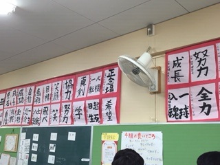 2年生で、先日行われました「書初め」が教室に掲示されていました。