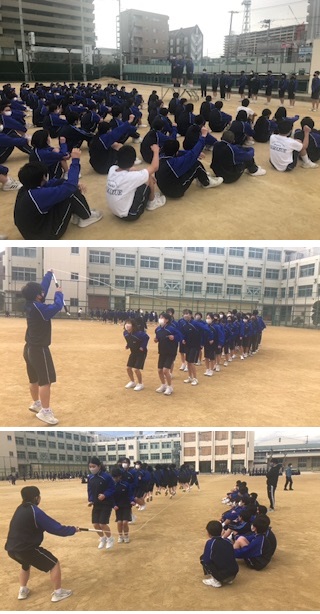 男女混合の全員競技は難しそうでしたが、各クラスで、跳ぶ位置を変えるなどの工夫をして取り組んでいました。