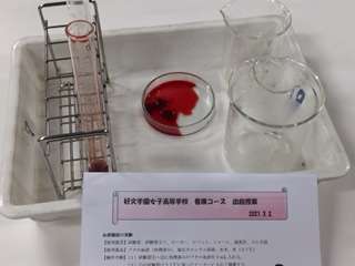 血液凝固の実験など、実践的な学習で、看護系ならではの授業です。