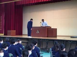 練習前には主任の先生から、学年の先生のさまざまな思いを代表して語られました。