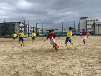 横堤中学校でサッカーの2ブロック新人大会の準々決勝が行われました。