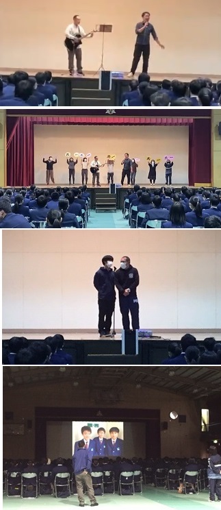 生徒会からのビデオメッセージ、3年の先生達からの贈り物(3年間の思い出)、3年生学年代表からことば、などが披露されました。