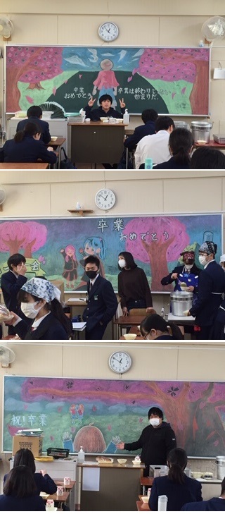 みんなおいしくいただきました。「2年間ありがとうございました」(3年生より)