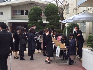 コロナウイルス感染予防対策の為、保護者の方は、入口で検温と消毒をした後に受付をしてもらいました。