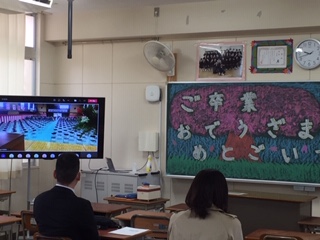 体育館に入れない保護者の方々は、教室でのリモートでの参加とさせていただきました。