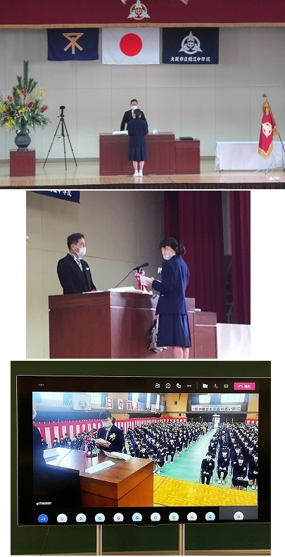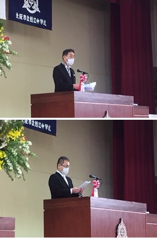 校長先生からは、「どこに行くかより どう過ごすかが大事」と激励の言葉が、またPTA会長様からは「一期一会」を大切にしてくださいとお祝いのことがが述べられました。