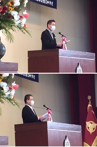 学校長お祝いの言葉では、「夢や目標に向かって『情熱と我慢』を大事にしてください」とお話がありました。