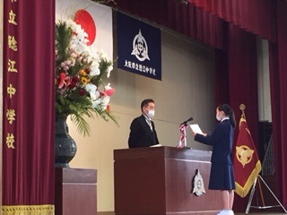 国歌・大阪市歌及び校歌は、コロナ感染予防のため斉唱せず、CDより流しました。
