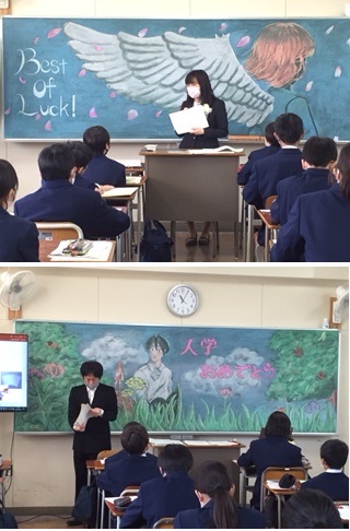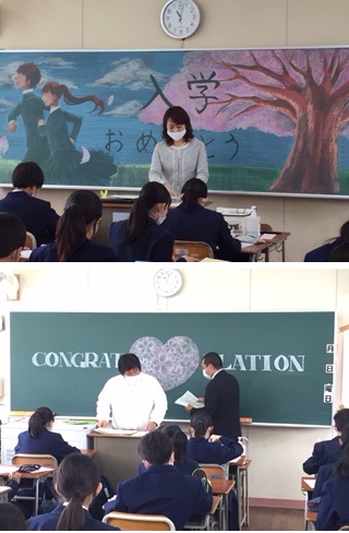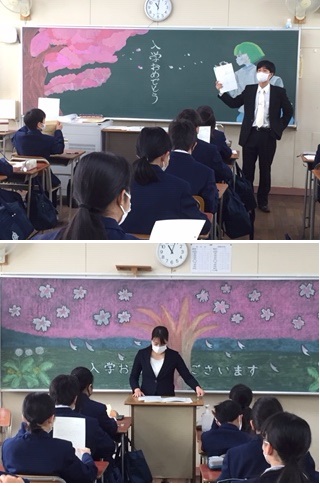 式後、生徒は教科書を受け取り、教室で学級活動をしてます。