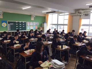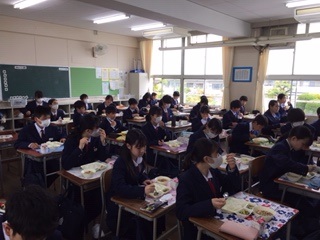 コロナ対応で、静かに喫食し、終了した人からマスクを着用しています。