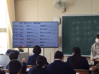 学校での学習では、英語のプリントや確認テスト、動画での学習などに取り組んでいました。