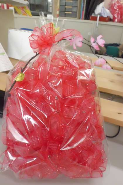 3月12日(木)の卒業式で卒業生がつける胸花を在校生が心を込めて手作りしました。
