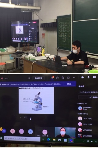 2年生・3年生は同じ教科(2・3年ともに理科)で学年一斉に双方向通信の授業を試してみました。