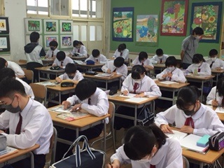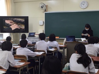 ●2年生の音楽では、教室でプリントを使って学習をしていました。